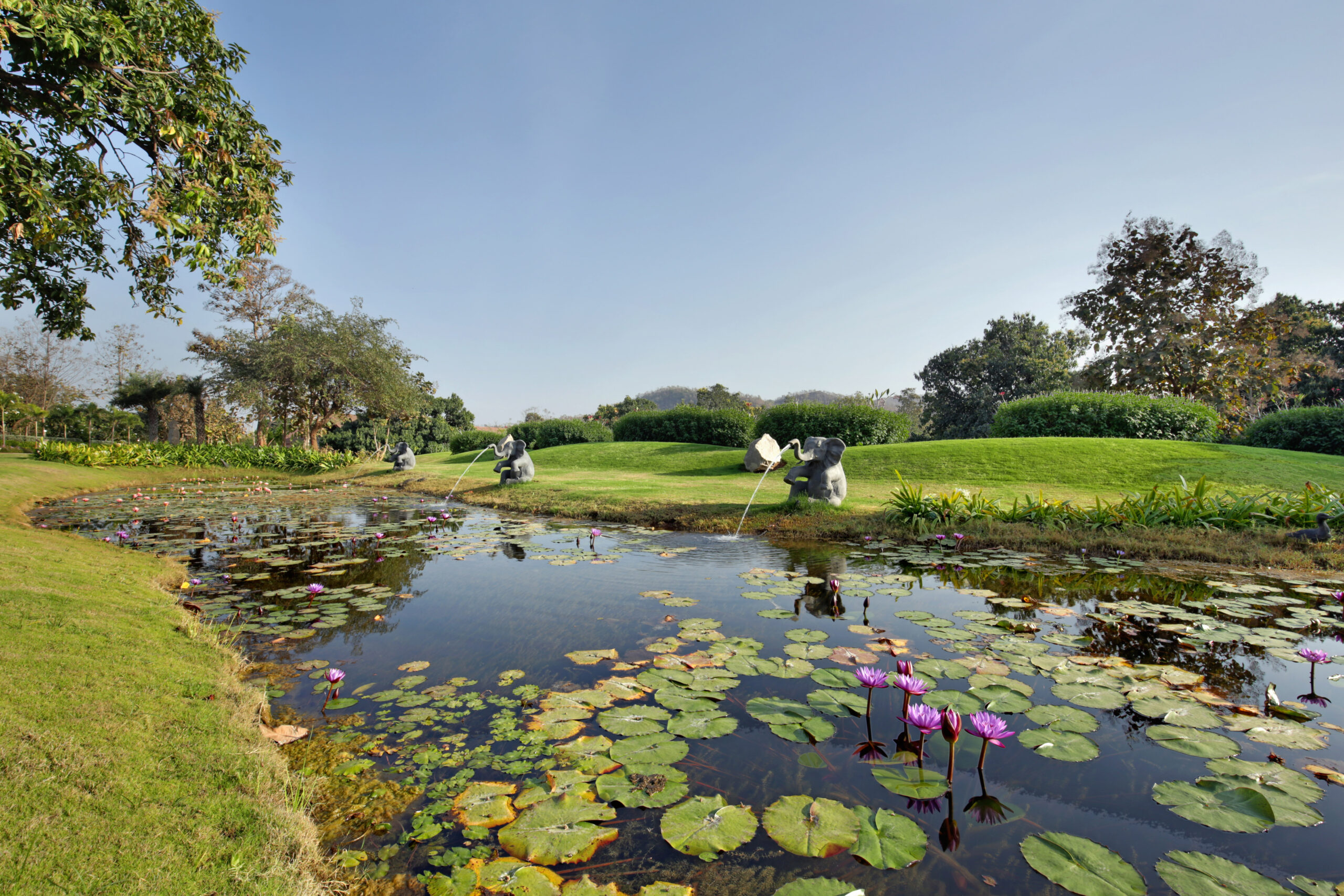 Several water bodies have been incorporated into the landscape design, enhancing the visual character of the campus while also contributing to the microclimate. Outdoor lighting has been designed to remain minimal and unobtrusive, blending into the landscape during the day and requiring only occasional replacement of LED bulbs.