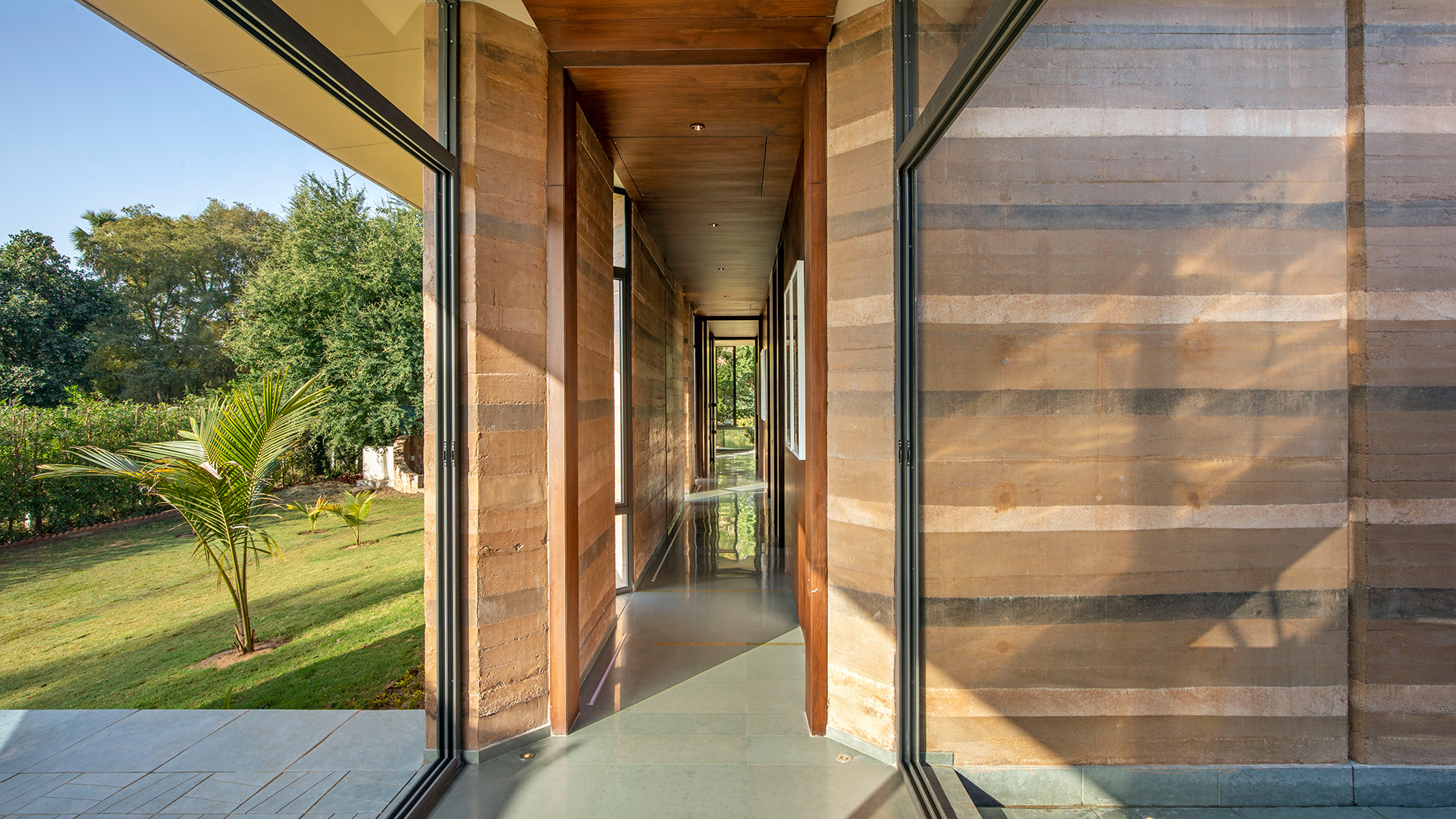 Located amidst the rural landscape near Halol in Vadodara, Gujarat, The Earth House is a near net-zero sustainable residence that reinterprets traditional construction techniques through contemporary architecture. Designed using rammed earth and locally sourced natural materials, the house responds sensitively to its climate and surroundings while minimizing environmental impact.