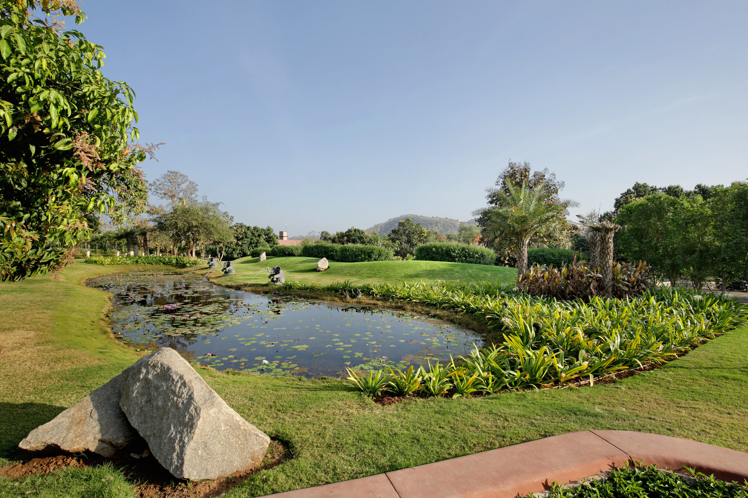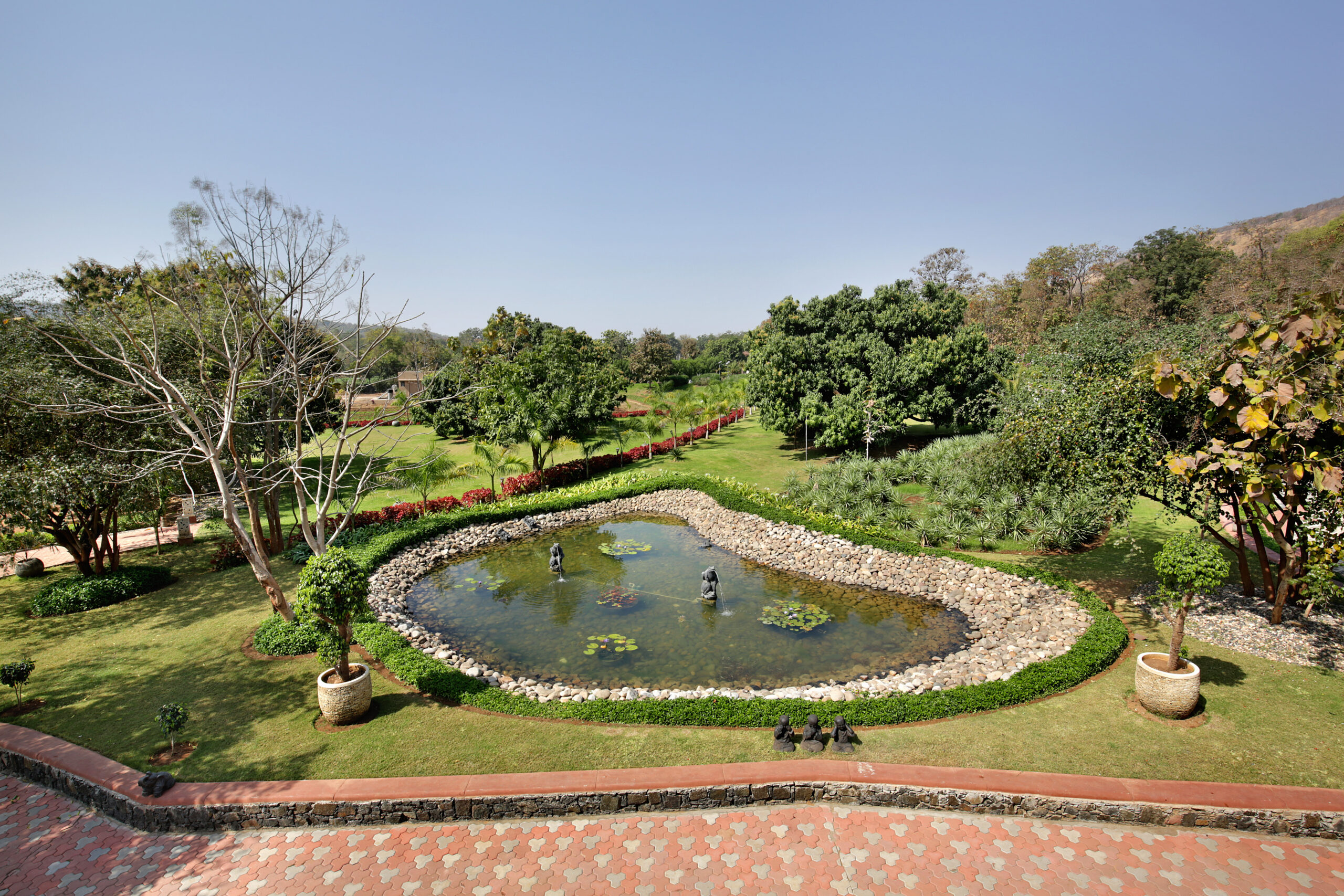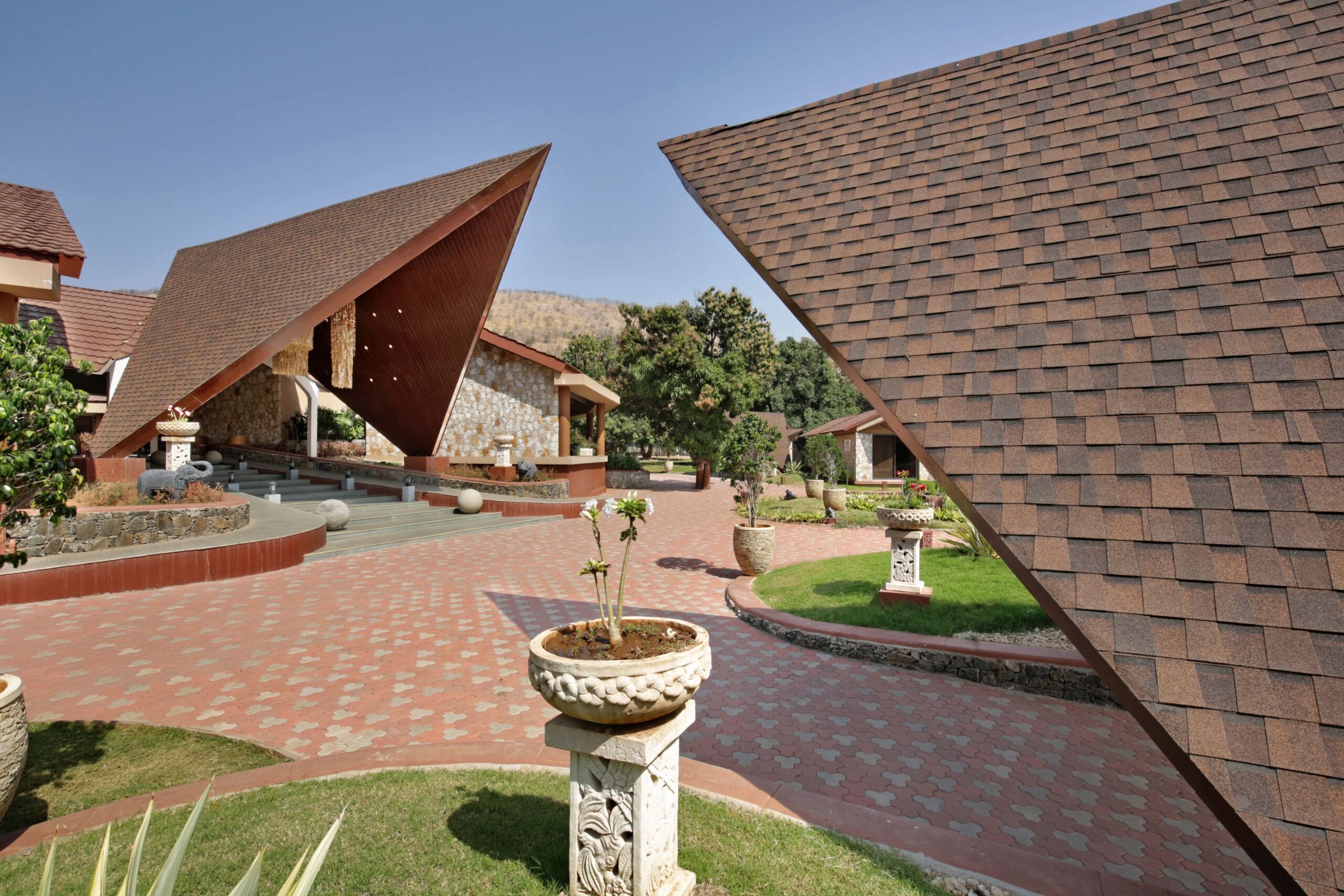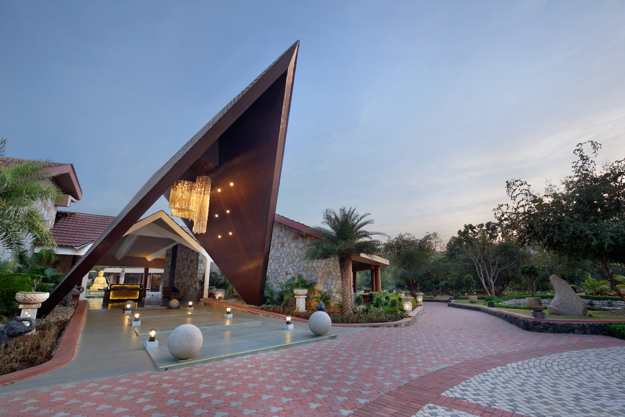 Sustainable design strategies such as solar energy generation, rainwater harvesting, and organic farming further reinforce the centre’s philosophy of holistic wellness and environmental responsibility.